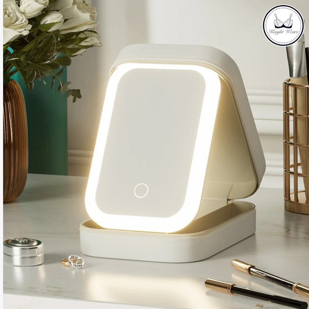 Organize your beauty essentials on the go with the Luxury Travel Makeup Box by Knight Wears. This sleek, compact makeup case features a built-in LED mirror for perfect lighting and storage compartments for makeup, brushes, rings, and accessories. Crafted for those who appreciate both style and functionality, this travel-friendly beauty box ensures that your items are neatly stored and easy to access wherever you are.